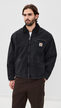 - Fabric: Heavyweight, non-stretch canvas - Corduroy trim - Welt breast and slant front pockets - Adjustable snap tabs at hem - Sherpa lining - Collared neckline - Long sleeves - Zip at front - Shell: 100% cotton - Lined - Lining: 100% polyester - Fill: 100% polyester - Wash cold - Imported, Tunisia Style #CARHA30963