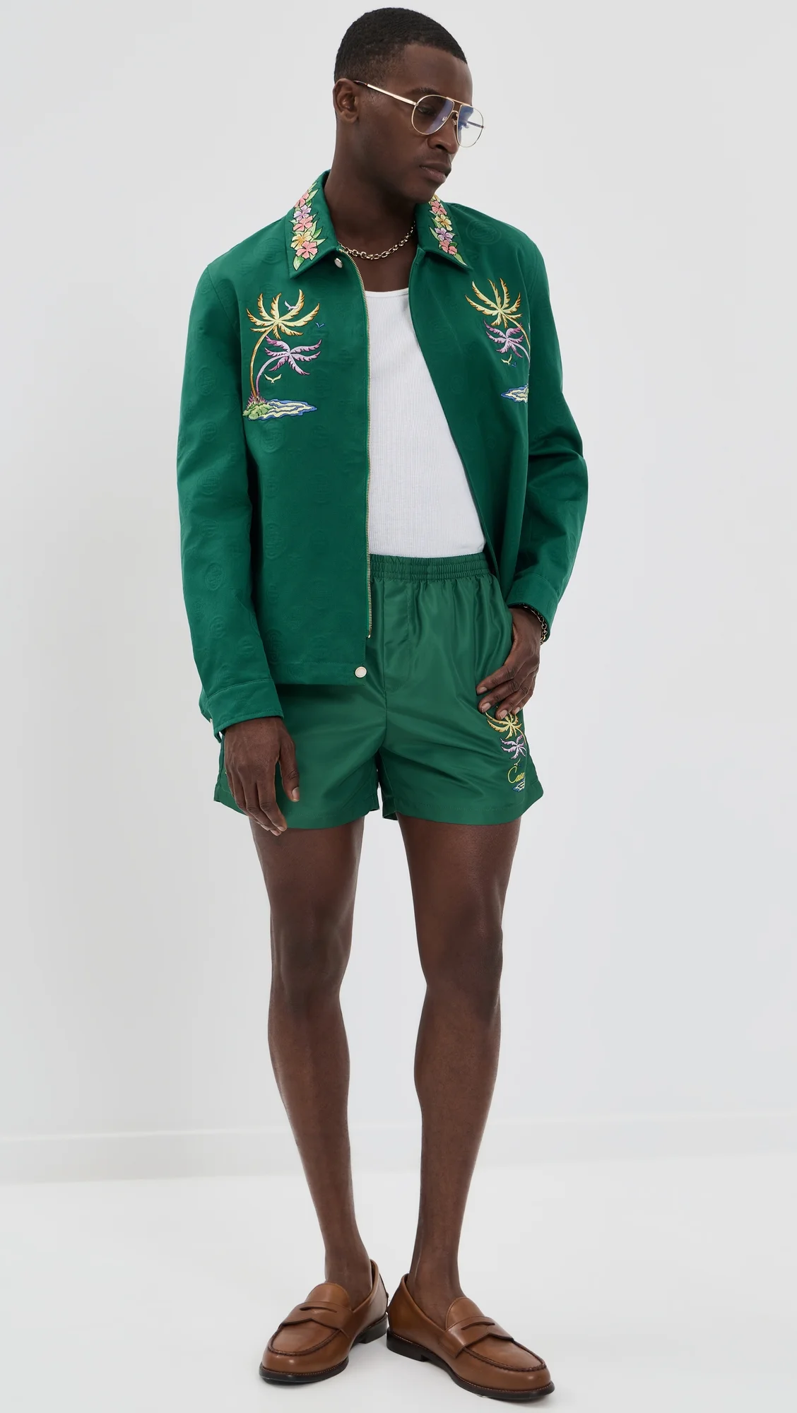 - Fabric: Mid-weight, non-stretch twill jacquard - Embroidered flowers and palm trees - Embroidered logo lettering at back - Logo monogram pattern - Collared neckline - Long sleeves with button cuffs - Button flap and hidden two-way zip placket - Slant hip pockets - Shell: 100% cotton - Lined - Lining: 100% viscose - Dry clean - Made in Italy Style #CASAC30009 Size & Fit Model measurements: Size M: Idriss (6'1") usually wears size M-L Measurements from size M Length: 26.75in / 68cm Sleeve: 34.25in / 87cm Chest: 47.25in / 120cm