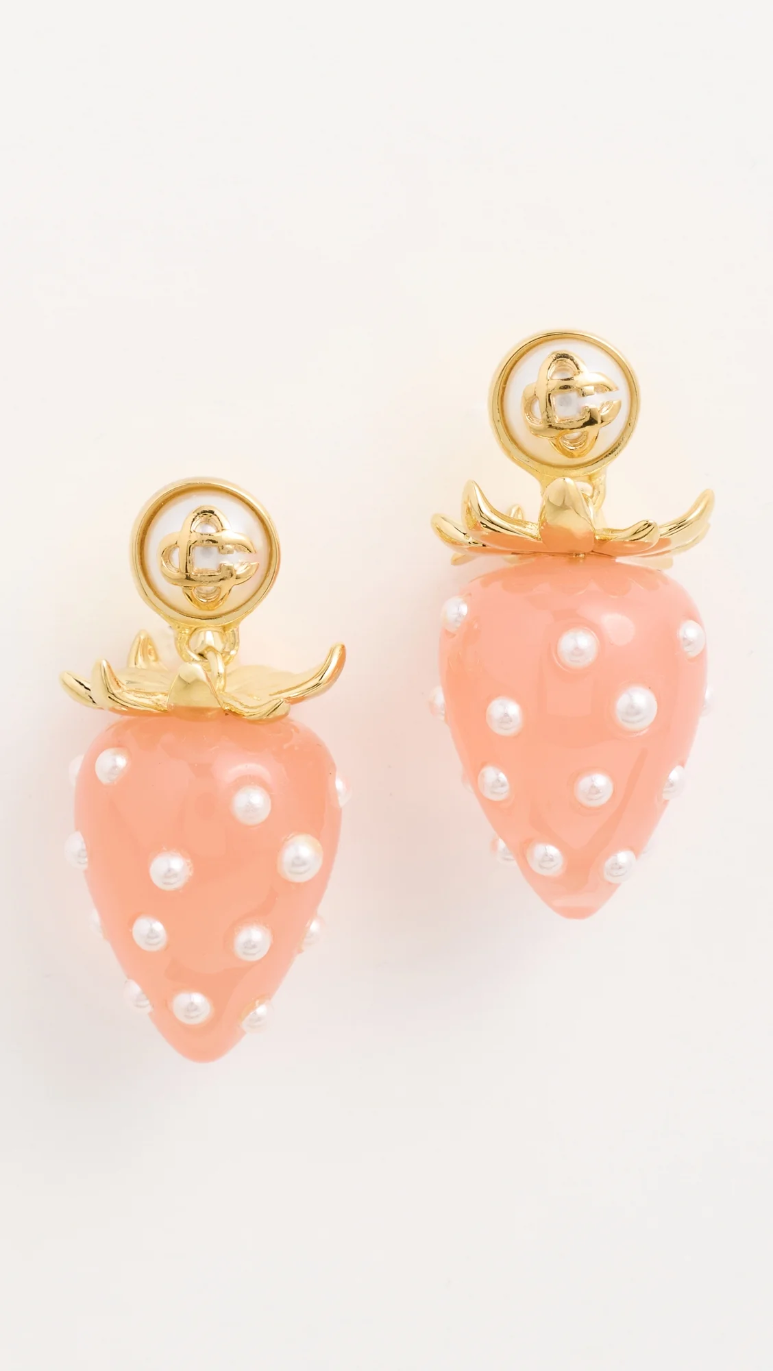 - Resin strawberries with faux pearl embellishments - 18k gold plated brass - Post closure - Imported, Thailand Style #CASAB30341