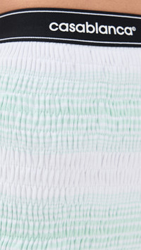 - Fabric: Lightweight, super-stretch ribbed knit - Contrast elastic waistband with rubber logo lettering - Embroidered logo patch - Striped pattern - Ruffle hem - Shell: 100% cotton - Wash cold - Made in Portugal Style #CASAB30289 Size & Fit Model measurements: Size S: Margaret (5'11") usually wears size XS Measurements from size S Rise: 11.5in / 29cm Inseam: 3.5in / 9cm