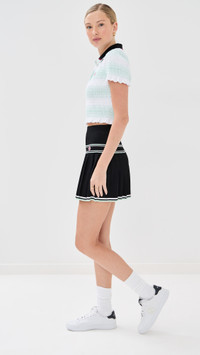 - Fabric: Mid-weight, super-stretch ribbed knit - Stripe print - Pleated hem - Covered elastic waistband - Shell: 100% viscose - Hand wash - Imported, China Style #CASAB30294 Size & Fit Model measurements: Size XS: Giselle (5'10") usually wears size XS Measurements from size XS Length: 15.25in / 39.0cm