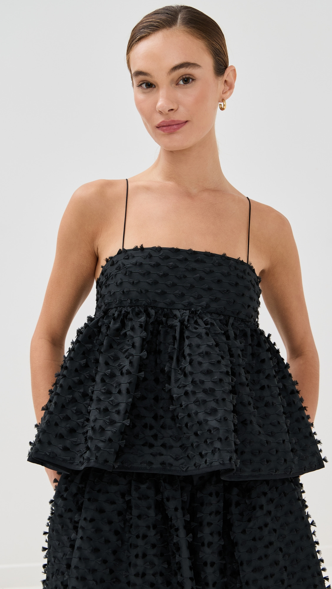 - Fabric: Lightweight, non-stretch weave - Allover tassels and textured finish - Sweetheart neckline - Sleeveless - Hook-and-eye and hidden zip at back - Shell: 100% polyester - Lined - Lining: 73% acetate/27% silk - Dry clean - Imported, Latvia Style #CBAHN30134