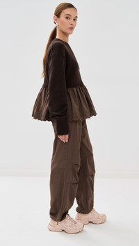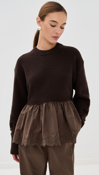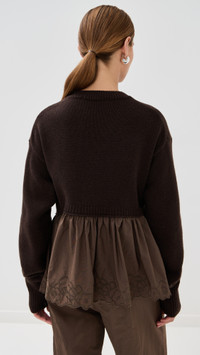 - Fabric: Mid-weight stretch knit - Technical weave trim - Scalloped hem with floral embroidery - Ribbed edges - Crew neck - Long sleeves - Shell: 97% cashmere/3% wool - Trim: 100% polyamide - Dry clean - Imported, Romania Style #CBAHN30140