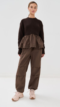 Embroidered cashmere and wool-blend and shell peplum sweater Brown