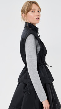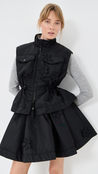 - Fabric: Lightweight, non-stretch technical weave - 3D floral applique - Adjustable drawcord waist with flower toggles - Flower snaps and zip pulls - Mock neck - Sleeveless - Two-way zip closure - Flap front pockets - Shell: 100% polyamide - Lined - Lining: 64% viscose/36% polyester - Fill: 100% polyester - Wash cold - Imported, Latvia Style #CBAHN30148 Size & Fit Model measurements: Size 6: Lila (5'10") usually wears size 4 Measurements from size 6 Length: 22in / 56.0cm, from shoulder