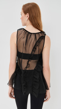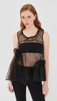 - Fabric: Lightweight, non-stretch organza - Tie details at front - Ruffled accents - Crew neck - Sleeveless - Sheer - Shell: 100% silk - Dry clean - Imported, Latvia Style #CBAHN30163 Size & Fit Model measurements: Size 6: Haley (5'9.5") usually wears size 6 Measurements from size 6 Length: 22.5in / 57.0cm, from shoulder