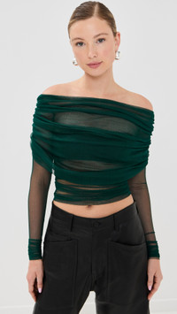 - Fabric: Lightweight mesh - Off-shoulder neckline - Long sleeves - Pullover design, no closure - Shell: 100% silk - Dry clean - Imported, China Style #CESBE30232