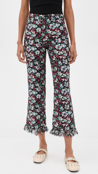 - Fabric: Lightweight, non-stretch crepe - Floral print - Ruffle hem and raw edges - Hook-and-eye and hidden zip at side - Shell: 70% viscose/30% silk - Dry clean - Imported, India Style #CIAOL30237 Size & Fit Model measurements: Size XS: Mical (5'10") usually wears size XS Measurements from size XS Rise: 9.75in / 25cm Inseam: 26.5in / 67cm Leg opening: 20.5in / 52cm