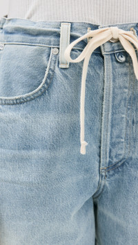 - Fabric: Mid-weight non-stretch denim - Fading and whiskering - Split hem - Drawstring at waist - Button fly - Shell: 100% cotton - Made in the USA of imported materials Style #CITIZ41683 Size & Fit Customers say: Runs large; please size down. Model measurements: - Size 24: Cher (5'11") usually wears size 24-25 - Size 31: Natasha (5'9") usually wears size 30-31 Measurements from size 24 Rise: 11.5in / 29cm Inseam: 6.25in / 16cm