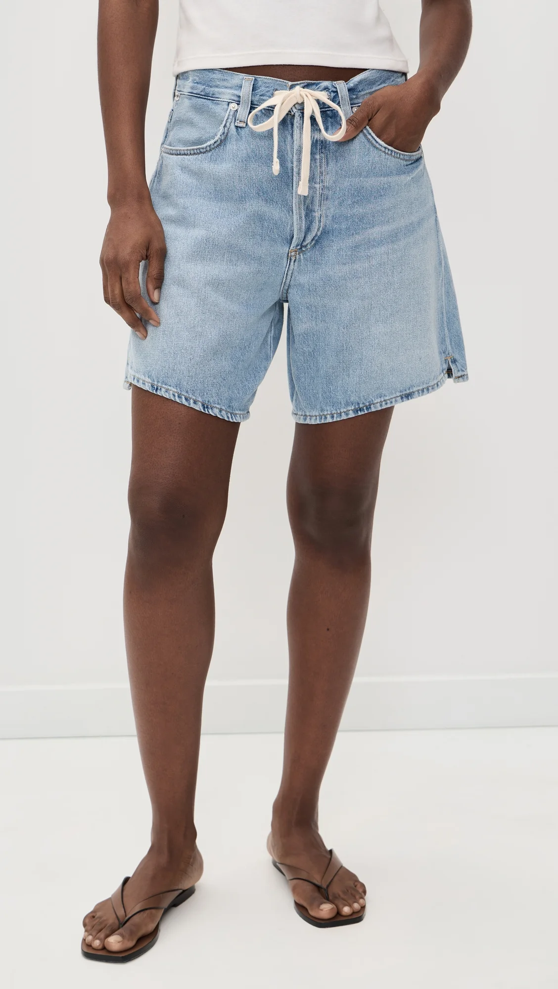 - Fabric: Mid-weight, non-stretch denim - Fading and whiskering - Button fly - Drawstring waist - Slant hip pockets and patch back pockets - Shell: 100% cotton - Wash cold - Made in the USA of imported materials Style #CITIZ41964 Size & Fit Model measurements: Size 25: Cher (5'11") usually wears size 24-25 Measurements from size 25 Rise: 11in / 28cm Inseam: 6.75in / 17cm
