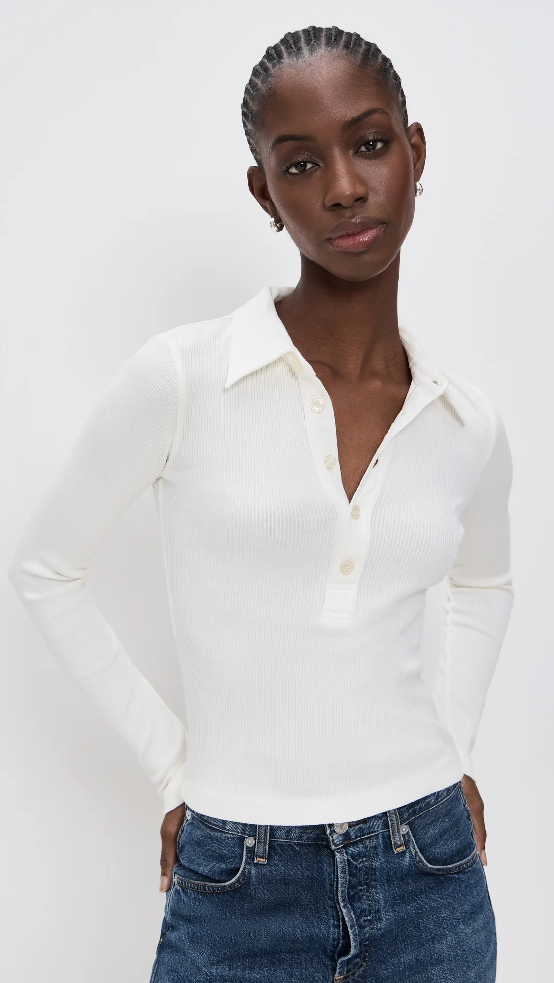 - Fabric: Mid-weight ribbed jersey with stretch - Polo neckline - Long sleeves - Partial button placket - Shell: 49% cotton/49% lyocell/2% spandex - Wash cold - Made in the USA of imported materials Style #CITIZ41906