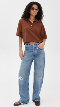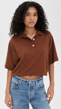 - Fabric: Lightweight pique knit - Polo neckline - Short sleeves - Partial button placket - Shell: 100% cotton - Wash cold - Made in the USA Style #CITIZ41858 Size & Fit Customers say: Runs large; please size down. Model measurements: Size XS: Eyshila (5'10") usually wears size XS Measurements from size XS Length: 18in / 46.0cm, from shoulder