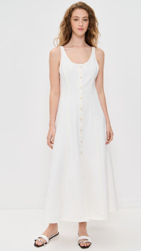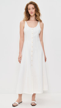 - Fabric: Mid-weight, non-stretch denim - Seamed creases - Midi length - Scoop neck - Button placket - Shell: 100% cotton - Unlined - Wash cold - Made in the USA of imported materials - Sleeveless Style #CITIZ41832 Size & Fit Customers say: Runs small; please size up. Model measurements: Size 2: Sophie (5'9") usually wears size 2 Measurements from size 2 Length: 49.5in / 126.0cm, from shoulder