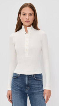- Fabric: Lightweight, super-stretch ribbed knit - Henley style - Long sleeves - Partial button placket - Shell: 49% cotton/49% lyocell/2% spandex - Wash cold - Made in the USA of imported materials Style #CITIZ41871 Size & Fit Customers say: Runs small; please size up. Model measurements: Size XS: Margaret (5'11") usually wears size XS Measurements from size XS Length: 20in / 51.0cm, from shoulder