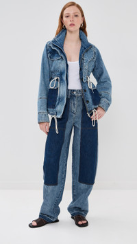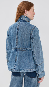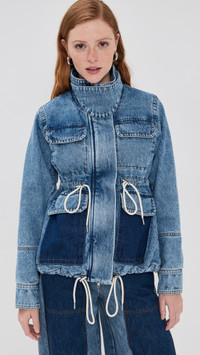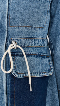 - Fabric: Heavyweight, non-stretch denim - Adjustable drawstring waistband and hem - Optional throat latch - Side-entry at bottom flap front pockets - Collared neck - Long sleeves with button cuffs - Covered button placket - Zip at front - Flap front pockets - Shell: 100% cotton - Lined - Dry clean - Imported, China Style #COCLT30110