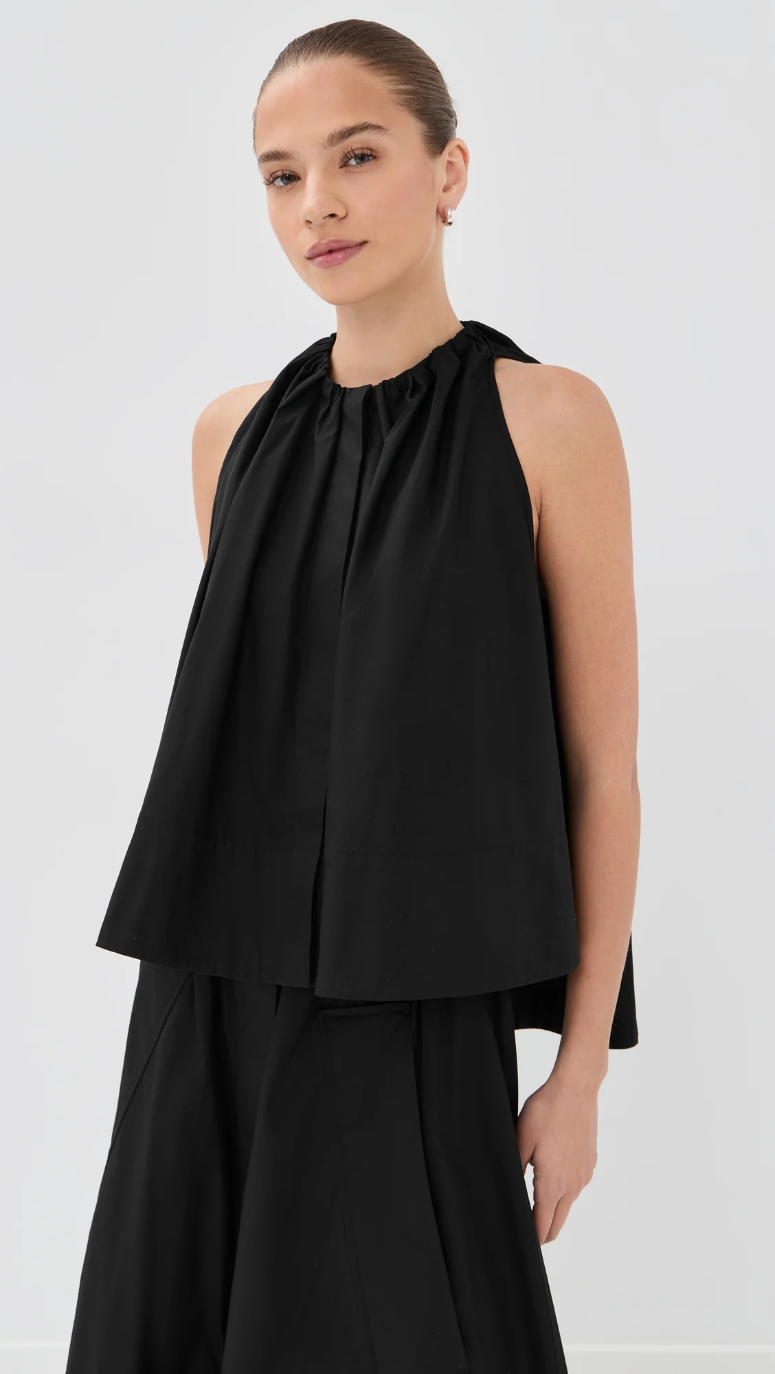 Gathered Tunic Shirt in Cotton Sateen