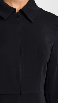 - Fabric: Mid-weight, stretch crepe - Collared neck and partial zip placket - Shell: 97% viscose/3% elastane - Unlined - Dry clean - Imported, China - Long sleeves Style #COCLT30014 Size & Fit Model measurements: Size XS: Mical (5'10") usually wears size XS Measurements from size XS Length: 46.5in / 118.0cm, from shoulder