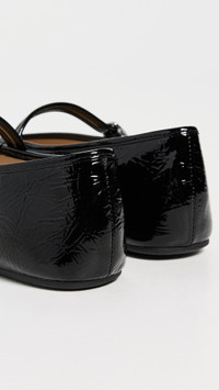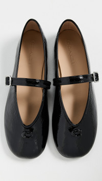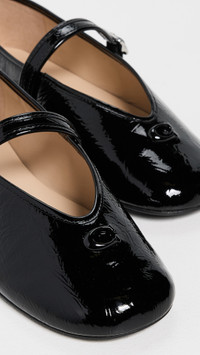 - Upper: Sheepskin - Adjustable strap with silver-tone buckle - Lightly cushioned footbed - Crinkled patent finish - Tonal logo emblem at top - Lining: Faux leather - Slip on - Round toe - Rubber sole - Imported, Vietnam - This item cannot be gift-boxed Style #COADB30612