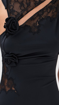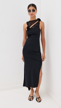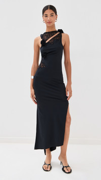 - Fabric: Lightweight, super-stretch slinky jersey - Cutout and floral appliques at front - Floral lace panels - Side slits - Asymmetrical hem - Midi length - Crew neck - Sleeveless - Pullover design, no closure - Shell: 78% polyamide/22% elastane - Unlined - Wash warm - Made in France Style #COPEA30180 Size & Fit Model measurements: Size XS: Rocio (5'11") usually wears size XS Measurements from size S Length: 51.25in / 130.0cm, from shoulder