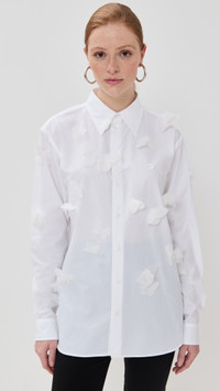 - Fabric: Lightweight, non-stretch shirting - 3D floral appliques - Collared neck - Long sleeves with button cuffs - Button placket - Shell: 100% cotton - Wash warm - Imported, Bulgaria Style #COPEA30166