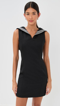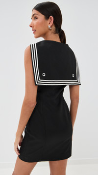 - Fabric: Mid-weight, non-stretch suiting - Embroidered logo at back - Sailor-style collar with contrast ribbon trim - Princess seams - Mini length - Collared neck - Sleeveless - Hook-and-eye and hidden zip at side - Shell: 100% polyester - Lined - Lining: 52% acetate/48% viscose - Dry clean - Made in Italy Style #COPEA30195 Size & Fit Model measurements: Size 34: Brittany (5'9.5") usually wears size 32 Measurements from size 36 Length: 33in / 84.0cm, from shoulder to front hem