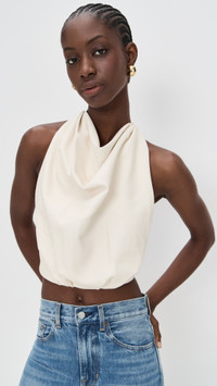 - Fabric: Lightweight, non-stretch faux leather - Adjustable button straps at back - Pleated waist - Cowl neck - Sleeveless - Shell: 100% polyurethane - Lined - Lining: 95% polyester/5% elastane - Dry clean - Imported, China Style #CULTG31494 Size & Fit Model measurements: Size XS: Cher (5'11") usually wears size XS Measurements from size XS Length: 19.75in / 50.0cm, from shoulder