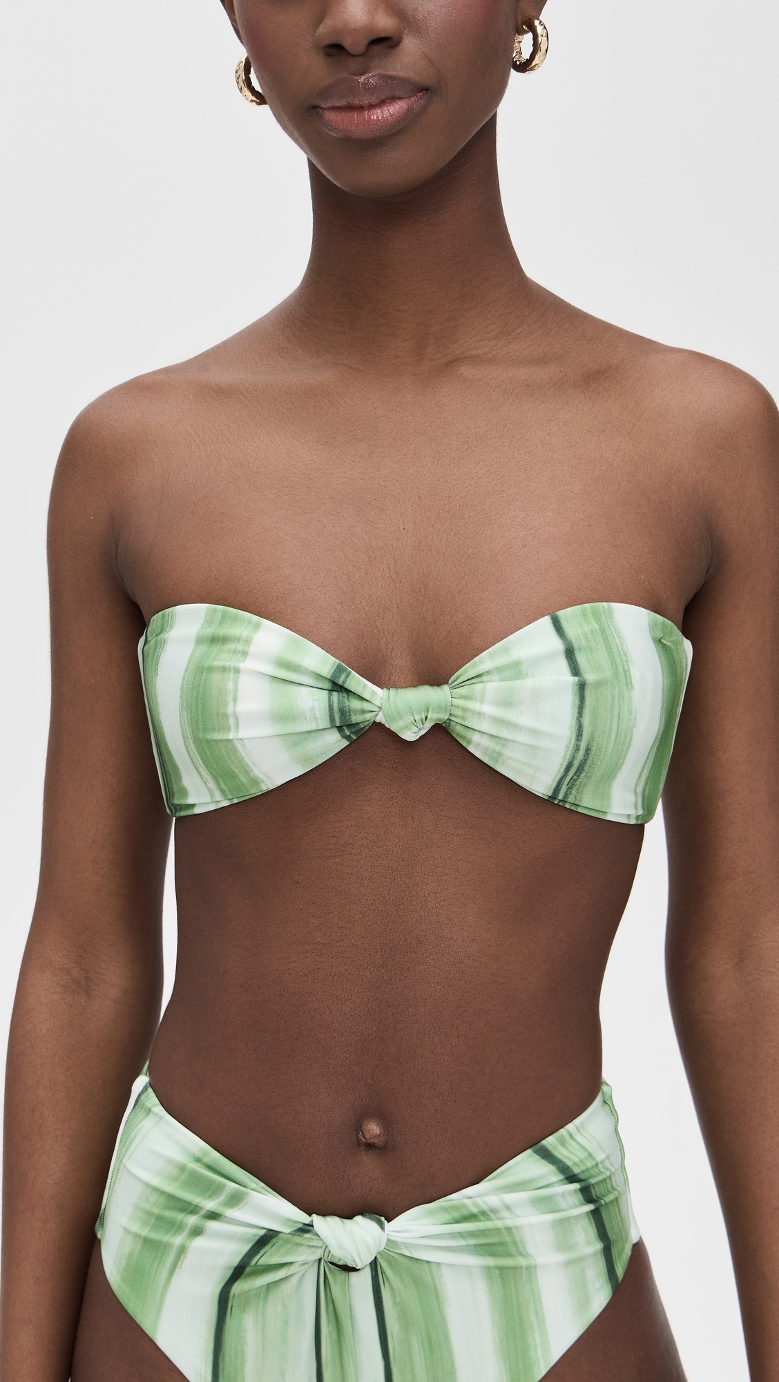 - Boned side seams - Stripe print - Knot detail at front - Bikini clasp - Optional, adjustable straps - Shell: 80% polyamide/20% elastane - Lined - Lining: 80% nylon/20% spandex - Hand wash - Imported, China - Bottoms sold separately Style #CULTG31397
