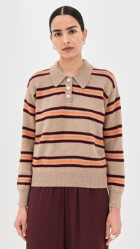 - Fabric: Mid-weight stretch knit - Striped pattern - Ribbed edges - Polo neckline - Long sleeves - Partial button placket - Shell: 100% wool - Hand wash - Made in United Kingdom Style #ANDDU30006 Size & Fit Model measurements: Size XS: Priyanka (5'9") usually wears size XS Measurements from size XS Length: 21.25in / 54.0cm, from shoulder