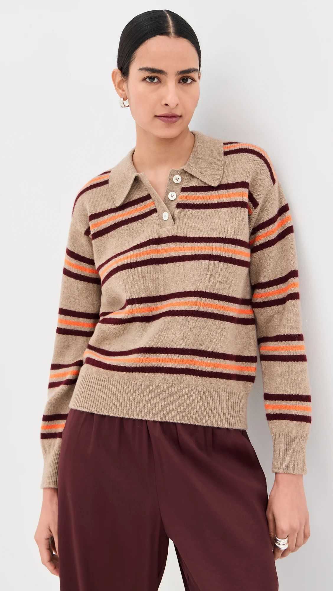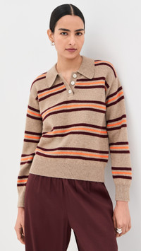 - Fabric: Mid-weight stretch knit - Striped pattern - Ribbed edges - Polo neckline - Long sleeves - Partial button placket - Shell: 100% wool - Hand wash - Made in United Kingdom Style #ANDDU30006