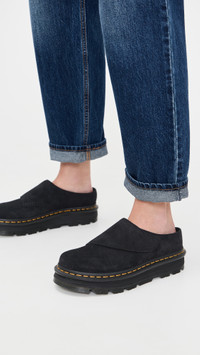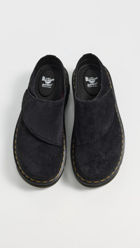 - Upper: Cowhide - Cushioned footbed - Signature contrast stitching at welt - Velcro strap at top - Lining: Suede - Slip on - Round toe - PVC sole - Imported, Vietnam - This item cannot be gift-boxed Style #DRMAR30769 Size & Fit This shoe is available in whole sizes only. If you wear a half size, please size down. Heel: 1.25in / 30mm Platform: 1in / 25mm