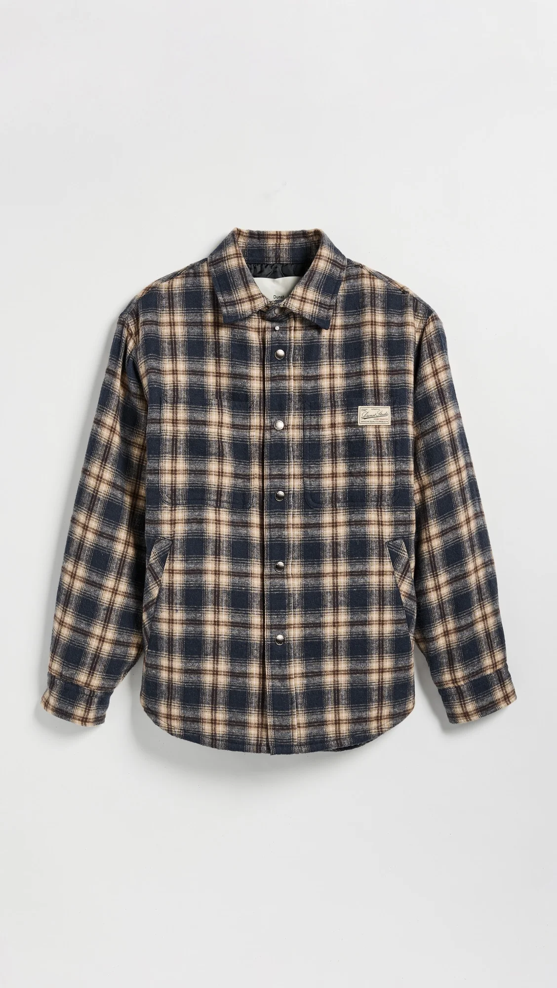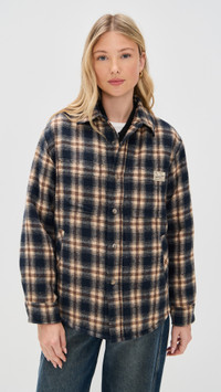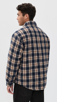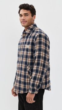 - Fabric: Mid-weight, non-stretch flannel - Plaid pattern - Logo patch at chest - Collared neck - Long sleeves with snap cuffs - Snap placket - Welt and patch front pockets - Patch interior pockets - Shell: 67% polyester/27% cotton/5% rayon/1% other fibers - Lined - Lining: 100% polyester - Fill: 100% polyester - Dry clean - Imported, Vietnam Style #DUNST30003 Size & Fit This style is unisex. For men’s sizing, take your usual size. For women’s sizing, take one size down from your usual size. Model measurements: - Size XS: Giselle (5'10") usually wears size XS - Size M: Laurence (6'2") - Size M: Justin (6'2") Measurements from size XS Length: 22.75in / 58.0cm, from shoulder