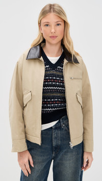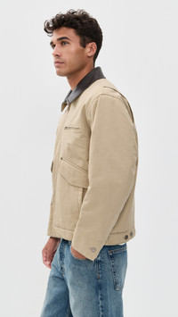 - Fabric: Mid-weight, non-stretch canvas - Faux leather contrast collar - Button tabs at back - Collared neck - Long sleeves with button cuffs - Two-way zip closure - Patch interior pocket - Multiple exterior pockets - Shell: 100% cotton - Trim: 100% faux leather - Lined - Lining: 100% polyester - Fill: 100% polyester - Dry clean - Imported, Vietnam Style #DUNST30012
