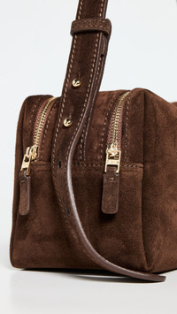 - Cowhide suede - Double zip closure - Gold-tone hardware - Adjustable strap - Lining: Suede - Weight: 12oz / 0.34kg - Made in Italy Style #ELLME30198 Size & Fit Height: 4.75in / 12cm Length: 9.75in / 25cm Depth: 4in / 10cm Strap drop: 10.25in / 26cm