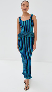 - Fabric: Mid-weight stretch crochet - Striped pattern - Fringe hem - Covered elastic waistband - Shell: 100% cotton - Unlined - Dry clean - Imported, Peru Style #ESCVD30060 Size & Fit Model measurements: Size XS: Alexis (5'8") usually wears size XS-S Measurements from size S Length: 35.5in / 90.0cm