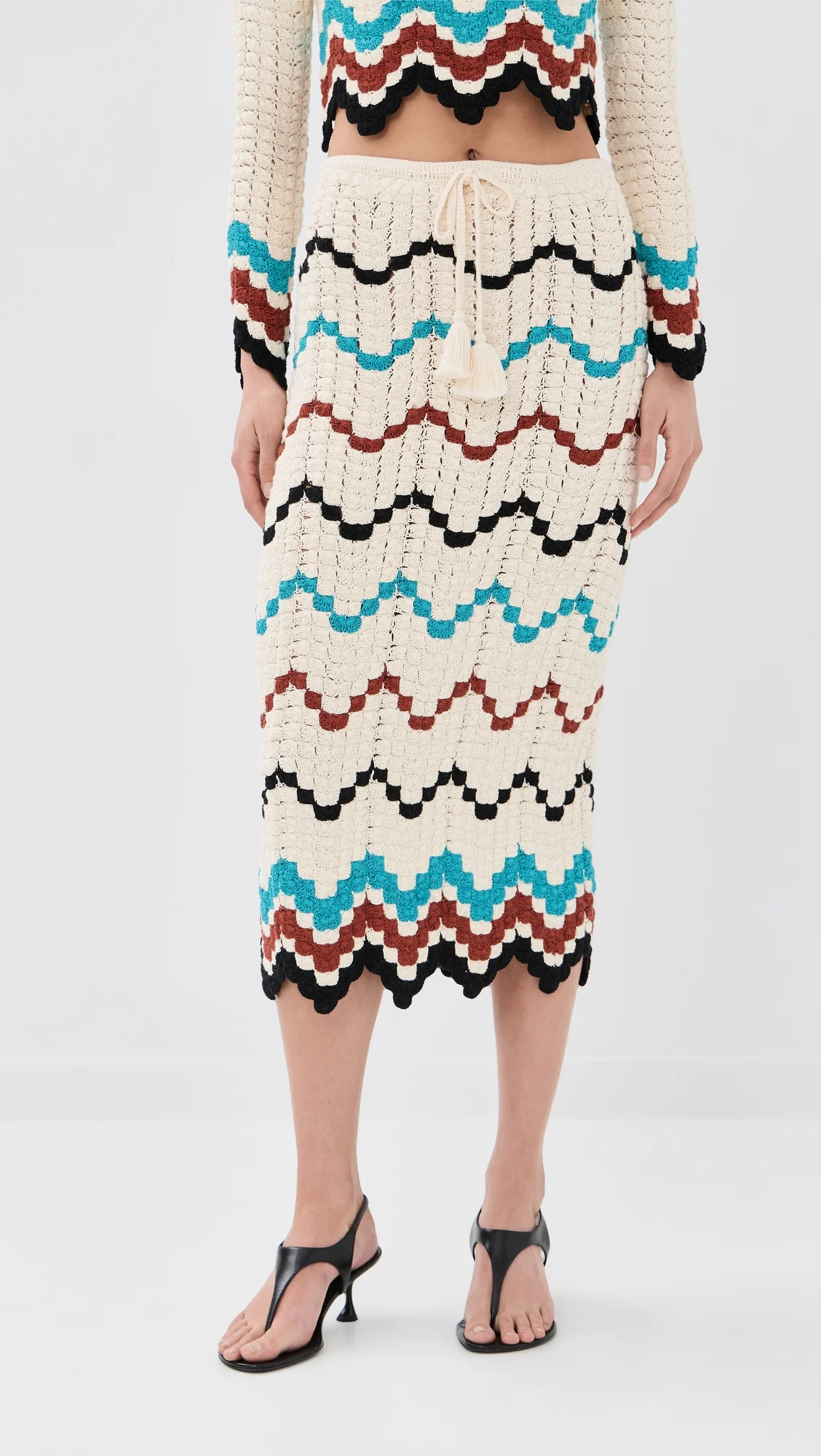 Safi Scalloped Crocheted Cotton Midi Skirt