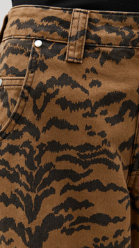 - Fabric: Mid-weight, non-stretch denim - Tiger print - Embroidered logo patch at back - Button closure and zip fly - 5-pocket styling - Shell: 100% cotton - Wash cold - Imported, Turkey Style #ESSEN30163 Size & Fit Model measurements: Size 25: Mia (5'9.5") usually wears size 24-25 Measurements from size 25 Rise: 11.75in / 30cm Inseam: 34.75in / 88cm Leg opening: 20.5in / 52cm