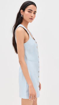 - Fabric: Mid-weight, non-stretch linen weave - Faux welt front pockets - Mini length - Square neckline - Button placket - Shell: 100% linen - Lined - Lining: 100% cotton - Hand wash - Imported, Indonesia - Sleeveless Style #FFULL30741