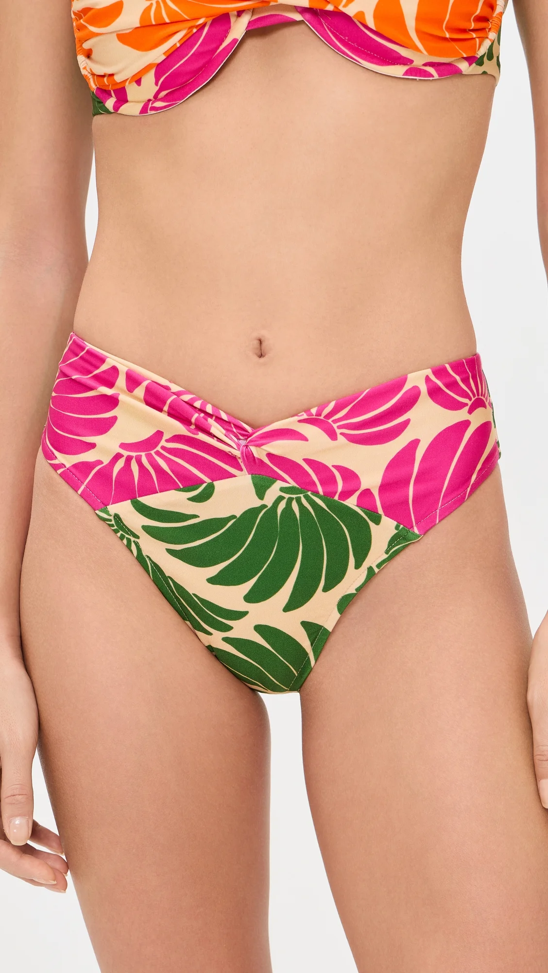 - Banana print - Twisted detail at front - Moderate coverage - Shell: 84% polyamide/16% elastane - Lined - Lining: 88% polyamide/12% elastane - Wash cold - Imported, Brazil Style #FARMR31335 Size & Fit Model measurements: Size XS: Cai (5'7") usually wears size XS