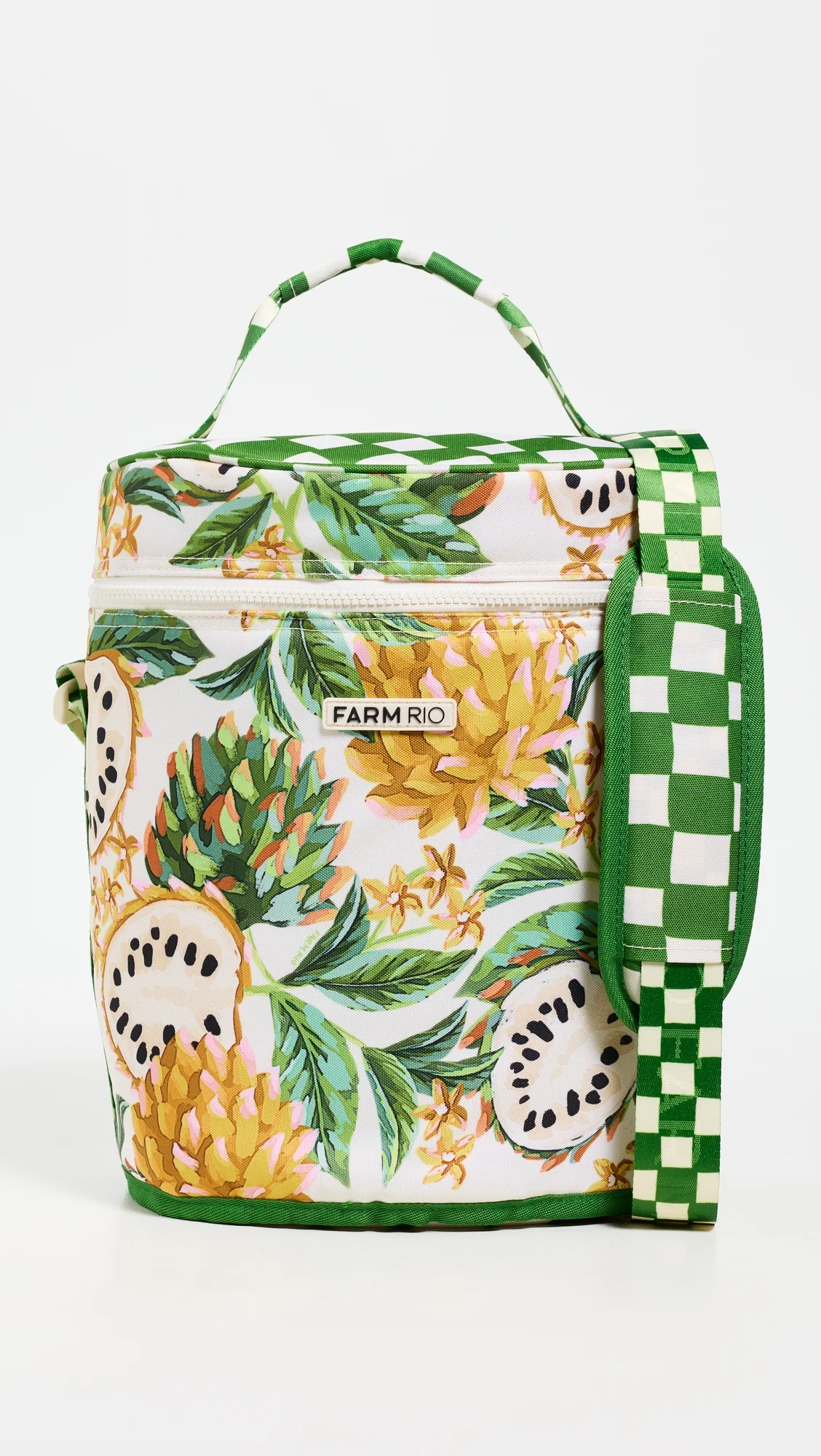 - Fabric: Technical weave - Insulated design - Tropical print - Checkered print - Zip closure - Crossbody strap - Imported, China Style #FARMR31388 Size & Fit Width: 12.5in / 32cm Height: 11.75in / 30cm Depth: 9.5in / 24cm