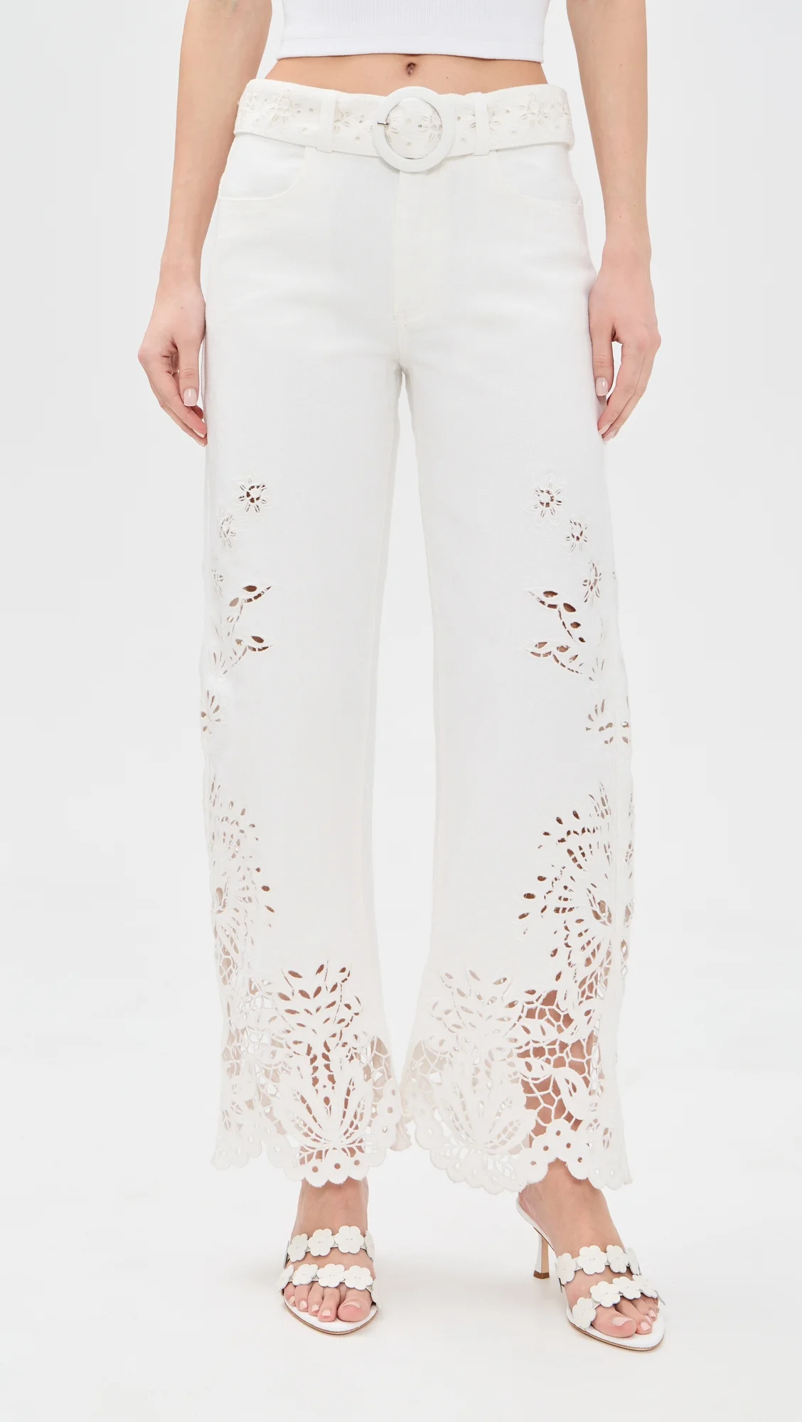 - Fabric: Mid-weight, non-stretch denim - Floral cutout embroidery - Hook-and-eye closure at waist, zip fly - Self-belt at waist - Slant hip pockets and patch back pockets - Shell: 100% cotton - Hand wash - Imported, China Style #FARMR31432 Size & Fit Model measurements: Size 25: Alina (5'10") usually wears size 25-26 Measurements from size 25 Rise: 9.75in / 25cm Inseam: 29.25in / 74cm Leg opening: 21.25in / 54cm