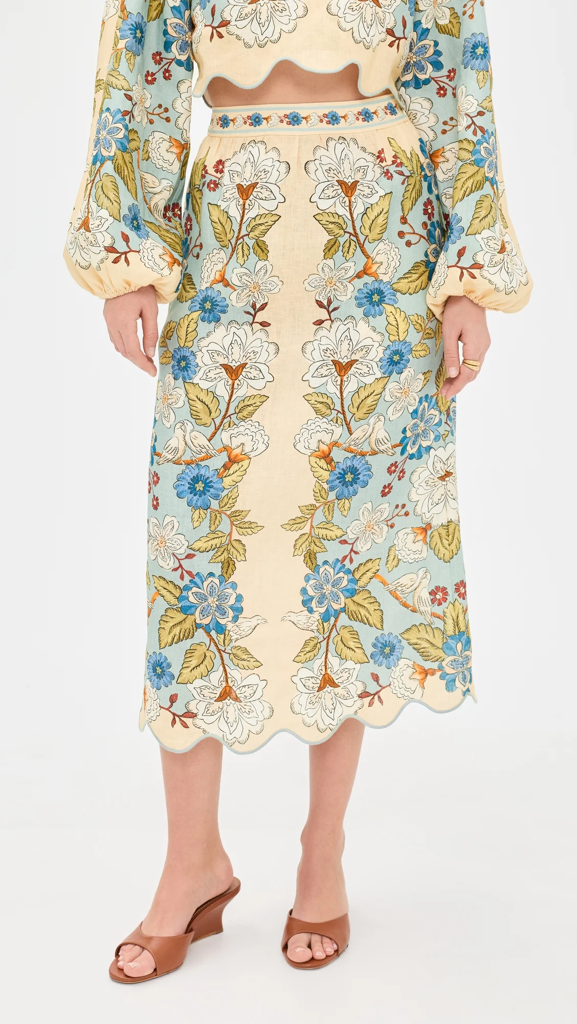 - Fabric: Lightweight, non-stretch linen weave - Floral print - Scalloped hem - Hook-and-eye and hidden zip at side - On-seam side pockets - Shell: 100% linen - Unlined - Wash cold - Imported, China Style #FARMR31308