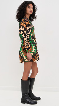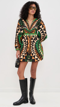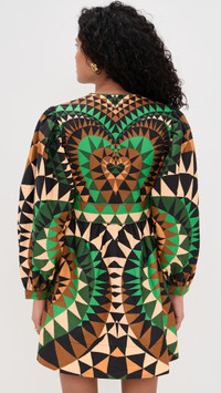 - Fabric: Mid-weight, non-stretch poplin - Geometric pattern - Mini length - V neck - Long puff sleeves - Button placket - Hidden zip at side - On-seam side pockets - Shell: 100% cotton - Lined - Lining: 100% polyester - Wash cold - Imported, China Style #FARMR31299 Size & Fit Model measurements: Size XS: Eyshila (5'10") usually wears size XS Measurements from size XS Length: 31.5in / 80.0cm, from shoulder