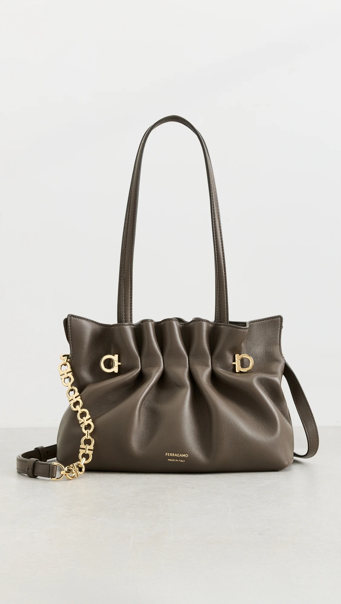 - Lambskin - Gathered top - Gold-tone hardware - Magnetic closure - Optional, adjustable strap - Lining: Textile - Weight: 16oz / 0.45kg - Made in Italy Style #FERRG32259 Size & Fit Length: 10.25in / 26cm Height: 7in / 18cm Depth: 4.75in / 12cm Strap drop: 19.75in / 50cm Handle drop: 9.5in / 24cm