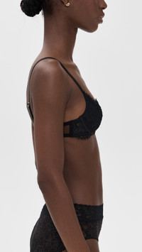 - Floral lace - Mesh side panels - Fixed bow at front - Adjustable hook-and-eye closures - Adjustable shoulder straps - Padded underwire cups - Shell: 92% silk/8% elastane - Trim: 86% polyamide/14% elastane - Hand wash - Imported, China - Bottoms sold separately Style #FDUMA31017