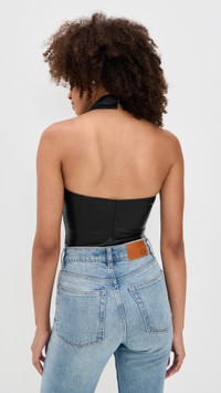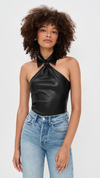 - Fabric: Lightweight, non-stretch faux leather - Jersey lined gusset - Collared neck - Sleeveless - Thong back and snap gusset - Hook-and-eye and hidden zip at side - Shell: 100% polyurethane - Partially lined - Lining: 100% cotton - Dry clean - Imported, China Style #FDUMA31028 Size & Fit Model measurements: Size S: Alexis (5'8") usually wears size XS-S