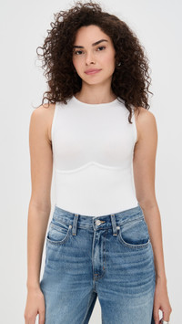 - Fabric: Mid-weight ribbed jersey with stretch - Crew neck - Sleeveless - Thong back and snap gusset - Shell: 72% polyester/18% lyocell/10% spandex - Hand wash - Imported, China Style #FDUMA31013