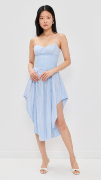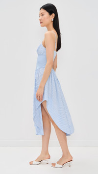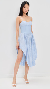 - Fabric: Lightweight stretch poplin - Asymmetrical hem - Basque waist - Stripe trim - Adjustable shoulder straps - Hook-and-eye and hidden zip at back - Shell: 76% cotton/21% polyamide/3% elastane - Lined - Wash cold - Imported, China Style #FDUMA30983