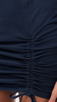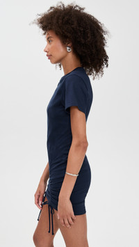 - Fabric: Lightweight stretch jersey - Embroidered lettering at front - Ruched skirt - Ties at hem - Short sleeves - Shell: 100% cotton - Hand wash - Imported, Peru Style #FDUMA31011