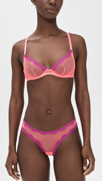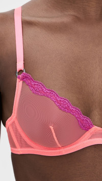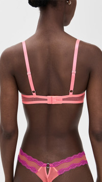 - Neon color is brighter than it appears in still photos - Lace trim - Hook-and-eye closure at back - Adjustable shoulder straps - Underwire cups - Sheer - Shell: 82% polyamide/18% elastane - Trim: 81% polyamide/19% elastane - Hand wash - Imported, China - Bottoms sold separately Style #FDUMA31016