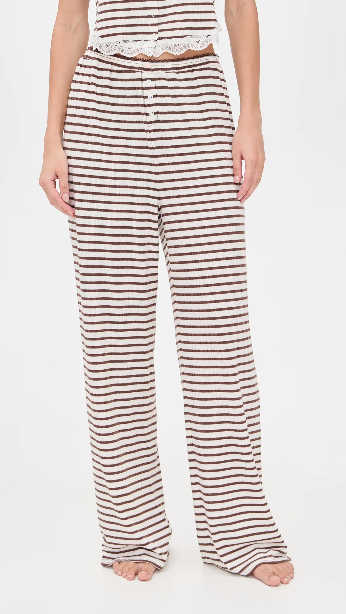 - Fabric: Lightweight ribbed jersey - Stripe pattern and lace trim - Faux button fly - Covered elastic waistband - Shell: 100% polyester - Wash cold - Imported, China Style #FLOVE31404